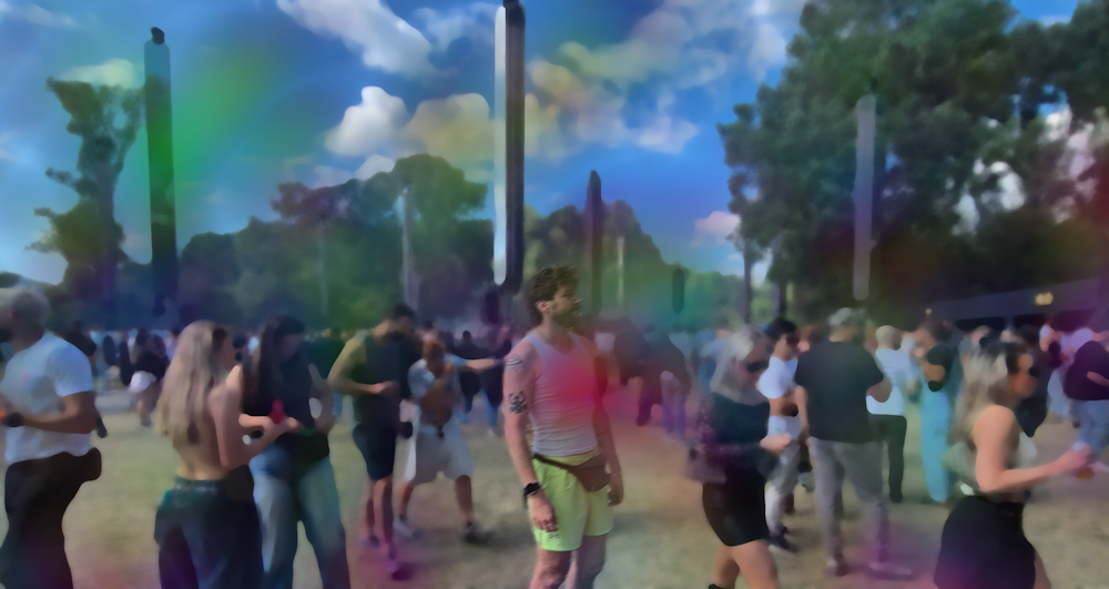 I was in the techno area of the festival. It felt like I was in some kind of shipping container with an improvised roof held together with rope, tarpaulins, and hope. The line and extra security at the entrance made it seem a bit more exclusive, but once inside, it was sadly just more of the same. By then, I had a desperate need for something physical, so my primitive mode kicked in. Time to hunt, an expression I hate, but it explained my simple needs. In my current state, it was more about observing and slowly shuffling toward a goal. That goal being someone cute to talk to. I had just popped my last half of an ecstasy pill and was still reeling from the previous dose. While I was dancing next to an elevated stage, my gaze fell on a tall man across the way.